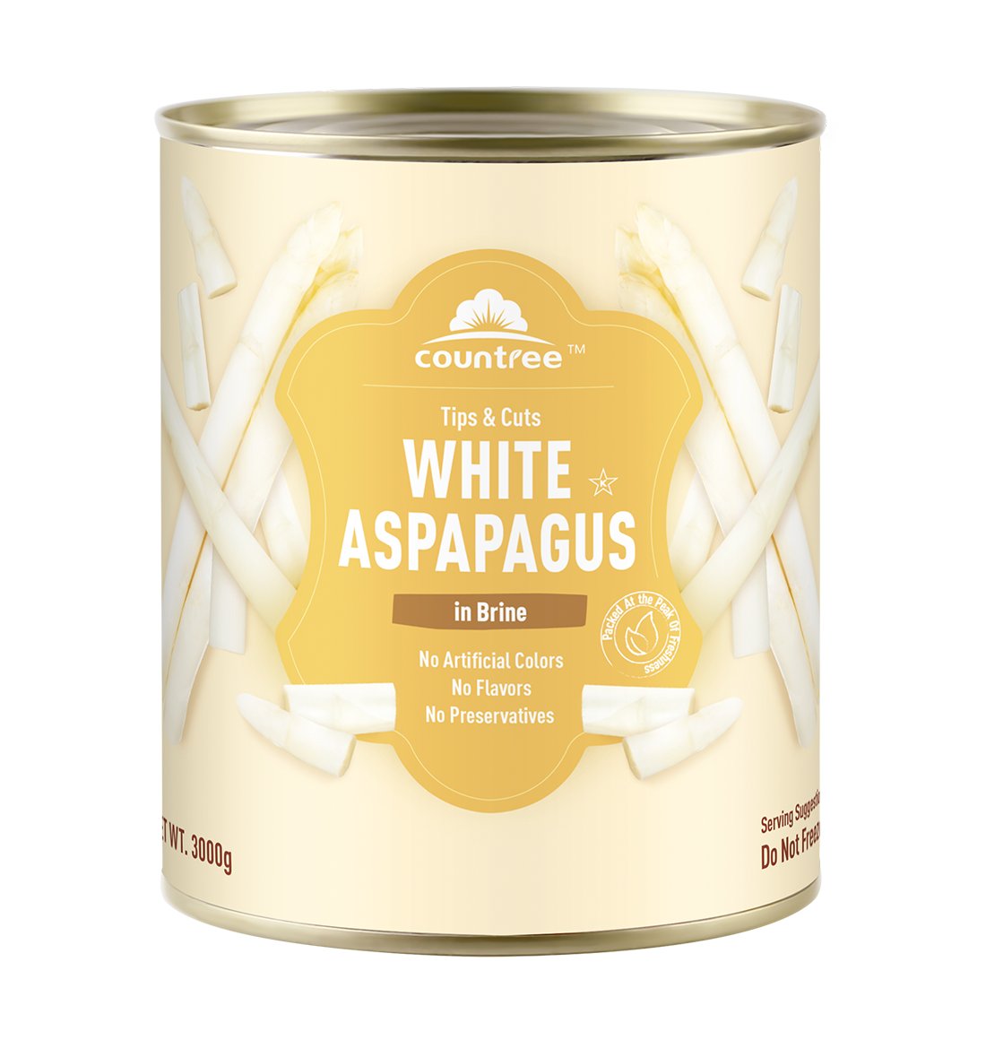 Our Canned White Asparagus Cuts #10 (3000G) are perfect for the food service industry, catering, and industrial processing. Ideal for a variety of culinary uses, from direct serving to creating dishes like asparagus soup, these large cans deliver premium quality for professional kitchens and production lines, fulfilling the unique needs of our B2B clients.